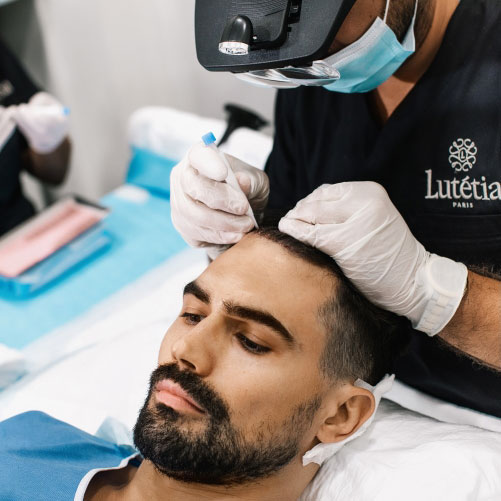 At Lutétia Clinic, there are effective treatments that can improve the health of your scalp and follicles, for instance, PRP, LED therapy, and Mesotherapy. Scalp micro pigmentation can create the illusion of thicker hair and cover up scalp imperfections. Hair transplant, of course, is the most effective and most permanent way to combat hair loss. A short information meeting with one of our hair specialists can answer any of your questions and provide the best options for your hair loss situation.